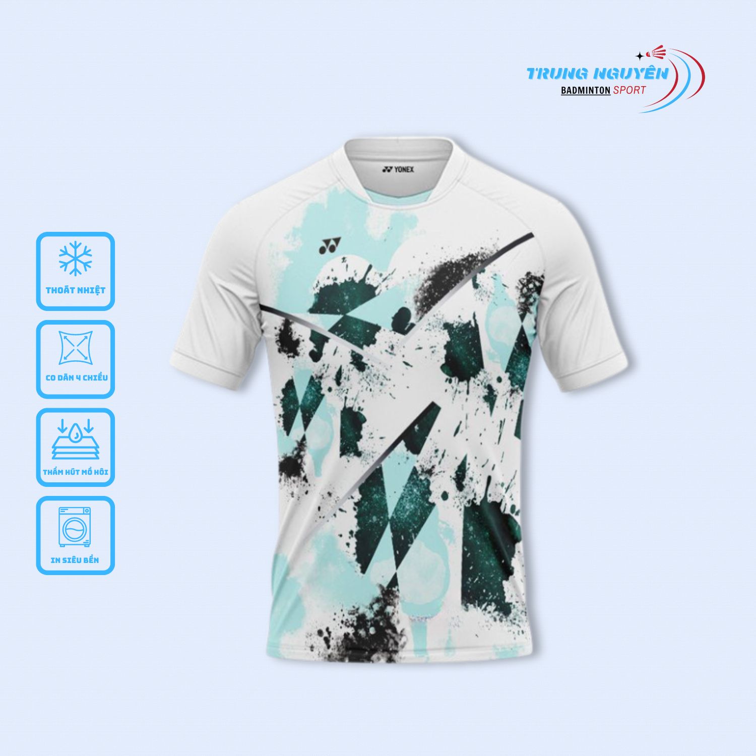 _ Áo Yonex YN43 có màu Trắng hoạ tiết xanh,đen