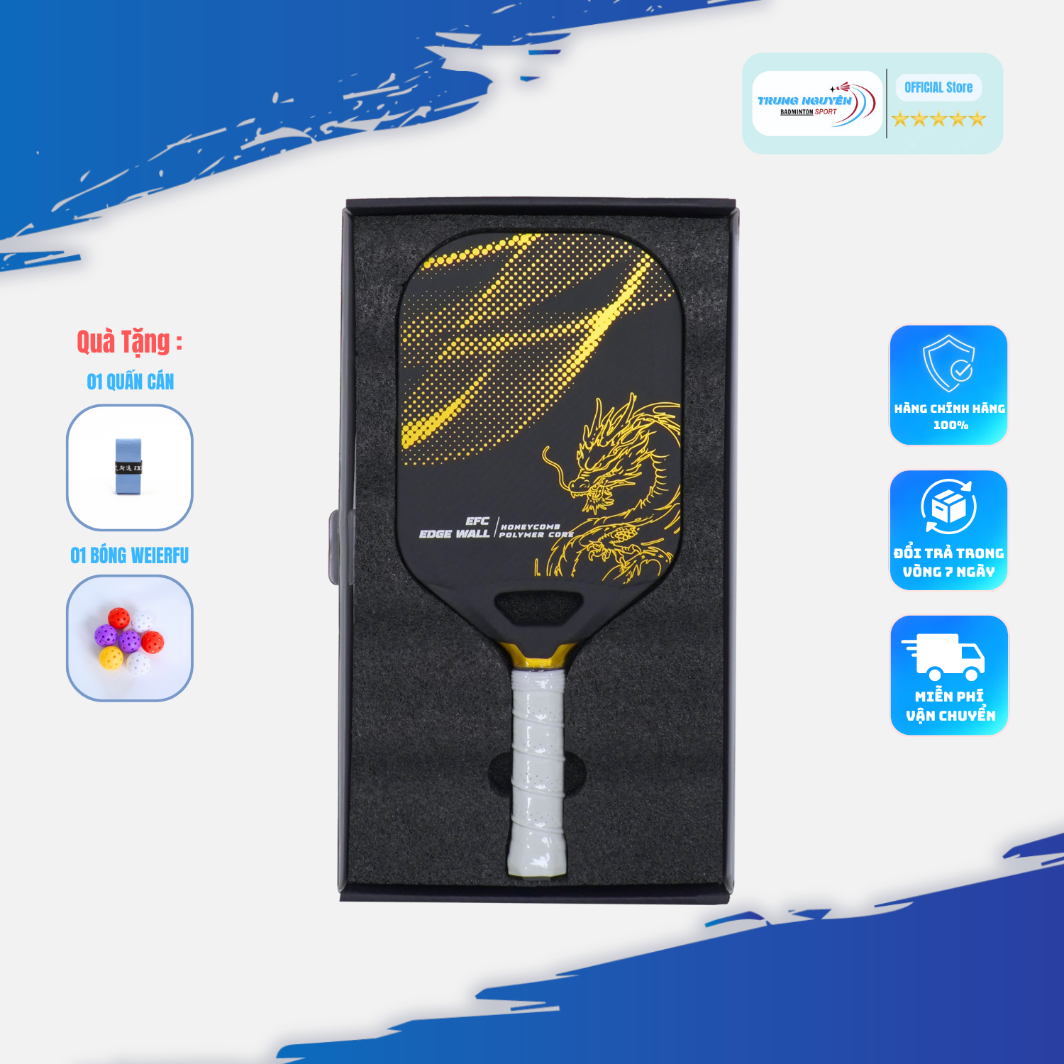 Vợt Pickleball Jusain Dragon T700 – Rồng Đen – Độ dày 14 mm